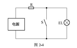 例如,图2-4所示旁路开关控制电灯的电路中,当开关S闭合时,电灯EL不亮;当开关S不闭合时,电灯EL亮。开关S的闭合与电灯EL的亮之间就是逻辑非的关系。