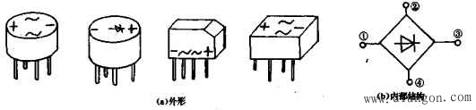 由图1可知,管脚位置已标明在桥堆的外壳上,一看便可确定,但有的桥堆标记不清,或标记有错误时,就不能盲目接入电路,否则会烧毁桥堆和其它元器件,对比就须用万用表判定桥堆管脚的准确位置。判别方法是:先找出直流输出正极(即③脚)端,假定某只脚为③脚.万用表置R×1K档,红表笔按③脚,用黑表笔分别去接①脚、②脚、④脚,如果三次均有较小阻值(导通电阻)则说明假定是正确的,即③脚为桥堆的直流输出正极,如果三次测试中,有一脚通或全不通,则说明假定是错纳,需另假定②脚重新测试,直到找到真正的②脚为止。找到③脚后,其余备脚便好确定了:仍用红表笔接③脚,用黑表笔分别测试另三只脚的正向电阻,其中阻值最大的那只脚印为直流电压输出端的负极,剩下两只脚为交流输入端,没有正负极性之分。(这里使用的指针式万用表,如果您使用的是数字万用表,还可以用二极管测试档,但注意数字式万用表红表笔接内电池正极,所以表笔顺序与上述方法相反)