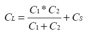 图示的C1,C2就是为晶振工作在并联谐振状态下得到加载电容CL的电容。关于最优的加载电容CL的计算公式为: