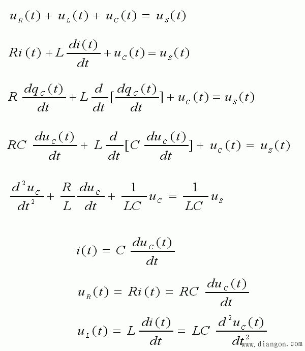对于一个简单的动态电路,已知电路元件参数 R、L、C,和电压源 us(t) ,求电容两端电压 uC (t) :