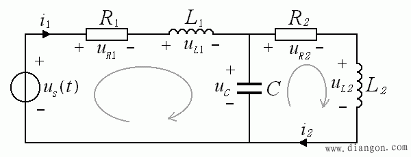 对于一个较复杂的动态电路,已知电路元件参数R1、L1、C1、R2、L2、C2,和电压源 us( t ) ,求电流 i1 ( t ) 随时间的变化: