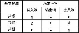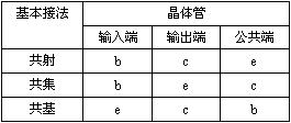 晶体管放大电路有共射、共集和共基三种接法,场效应管放大电路有共源、共漏和共栅三种接法,不同接法的放大电路具有不同的特点,也就具有不同的适用场合,因而判断放大电路属于哪种基本接法是判断其基本性能的基础。要正确判断放大电路的基本组态,属于动态分析范畴,故通常总要画出放大电路的交流通路。而对于实用电路,常常并不采用观察晶体管或场效应管哪个极接“地”的方法来判断其接法,因为在不少电路中放大管的三个极都不直接接“地”。通常是通过信号的输入、输出方式,即看输入信号作用于哪个电极和输出信号通过哪个电极作用于负载来判断基本接法,如表一、表二所示。 表一 晶体管放大电路