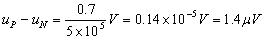 如果设二极管的导通电压为0.7V,集成运放的开环差模放大倍数为50万倍,那么为使二极管D1导通,集成运放的净输入电压应为: