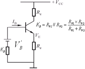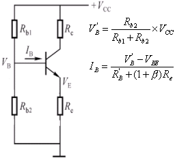 稳定工作点的另一种解释:温度T↑→IC↑→IE↑→VE↑(=IERe)↓(VB固定) ,则 IC↓ IB↓ VBE↓ (=VB-VE)。