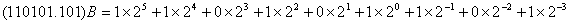 有0,1二个数码元素,基数r=2,逢二进一,如:(110101.101)2或(110101.101)B,写成通式展开后为:
