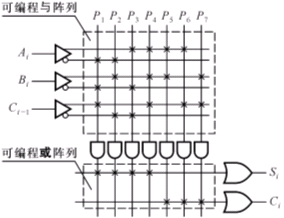 将多个PLD与、或门组合起来就成了PLD的与阵列和或阵列。用来产生各种各样的“与―或”函数式,然后实现各种逻辑电路。
