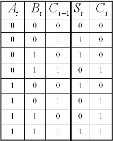 例:用与―或阵列实现三个一位二进制数相加的加法运算电路。令输入为: