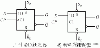 上升沿触发的D触发器逻辑符号,请注意它与电平触发器的区别。