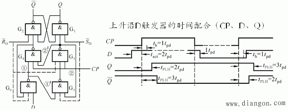 ⑴ 输入信号建立时间tset。它表示D信号应比CP早到的时间,从图可见,该时间为: