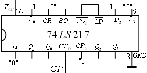 例:试用置数法将74LS217双时钟可逆计数器连接成一个六进制减法计数器。