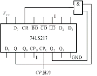 解:分析可知,74LS217为异步高电平清零,连接成加法计数模式,8421BCD码加法计数时的S6=Q3Q2Q1Q0=0110,所以,清零控制端的逻辑关系为:CR=Q2Q1。