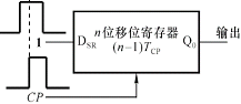n位的移位寄存器连接成右移串行输入模式,先在右移串行输入端加一个高电平脉冲,CP上升沿到达后,将高电平存入n位中的最高位,然后,经过(n-1)个CP周期,该高电平出现在输出Q0,实现了延迟的目的。