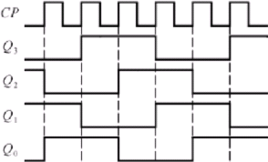 n位的移位寄存器连接成循环右移模式,如图,并行输入序列代码数据后,该序列就在移位寄存器中循环移位,产生一系列脉冲。如以四位为例子,并行存入0110序列代码后,序列脉冲波形如图所示。
