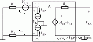 (4)输入失调电流温漂dIIO/dT:反映输入失调电流IIO随温度而变化的程度分析输出失调电压和失调电流的模型。