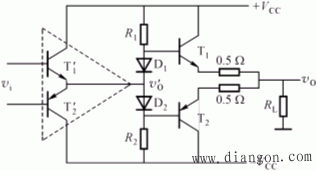 利用T1、T2管子的电流放大作用,达到扩大输出电流的目的。