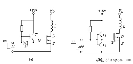 栅极直接驱动电路是最简单的一种形式,由于功率MOSFET的的输入阻抗很高,所以可以用TTL器件或CMOS器件直接进行驱动。图1是两种直接驱动的栅控电路。
