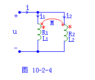 当互感线圈只有一端相连时的电路如图10-2-8(同名端在同侧),10-2-9(同名端在异侧)。消去互感后的等效电路如图10-2-10(同名端在同侧),10-2-11(同名端在异侧)。 消去互感后,可以用任意方法求解电路。  |