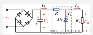 负载电流IO的增加,必然引起IR的增加,即UR增加,从而使UZ=UO减小,IZ减小。IZ的减小必然使IR减小,UR减小,从而使输出电压UO增加。这一稳压过程可概括如下: