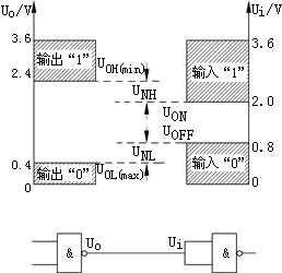 由TTL门电路的输出特性曲线可知,TTL门电路的输出高、低电平不是一个值,而是一个范围。同样,它的输入高、低电平也有一个范围,即它的输入信号允许一定的容差,称为噪声容限。