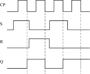 例1 图1所示的主从RS触发器电路中,已知CP、R和S的电压波形如图1所示试画出Q的电压波形。设触发器工作前已清零。