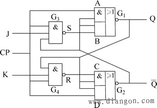 图1所示为利用门电路传输延迟时间的边沿JK触发器。