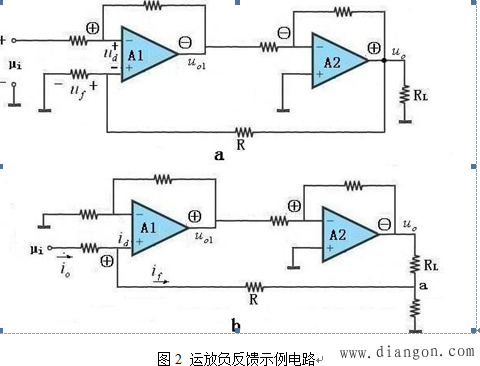 a. 反馈电路从A2的输出端引出,故为电压反馈;