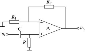 将图1(a)所示的一阶有源低通滤波器中的电阻R和电容C对调,即可成为一阶有源高通滤波器,如图1(a)所示。