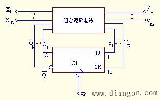 X1, X2,...Xn ――外部输入信号Q1, Q2,...Qk ――触发器的输出,称为状态变量Z1, Z2,...Zm ――对外输出信号Y1, Y2,...Yk ――触发器的激励信号