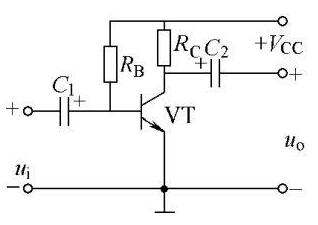 电路特点:三极管VT具有电流放大作用,是放大器的核心元件;基极偏置电阻Rb向三极管基极提供合适的基极电流;电源VCC一方面通过Rb给三极管提供发射极正偏电压,同时通过Rb给三极管集电极提供反偏电压,另一方面给放大电路提供能源;集电极负载电阻Rc的作用是把电流放大作用以电压的形式表现出来;C1,C2为耦合电容,利用它们“隔直通交“的特性,保证交流信号的传递,避免放大电路的输入端与信号源之间、输出端与负载之间相互影响。