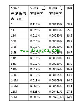 另外,校准5502A的电阻功能时,最好根据测试点数值使用8508A电阻测量功能的手动量程,避免设置在自动量程时,测量仪表在寻找合适量程的同时,校准器也在寻找合适的工作电流,使得两台仪器不能尽快选择到合适的量程和合适的电流范围,而不能正常测量,长时间得不到正确的测量结果。