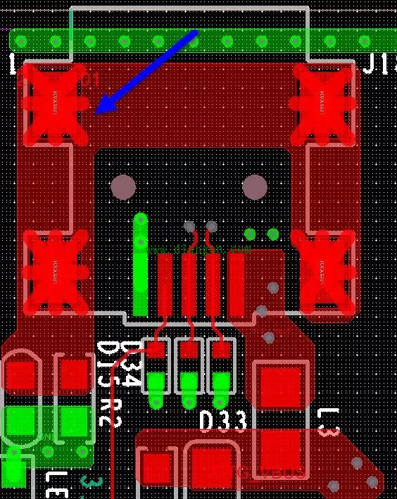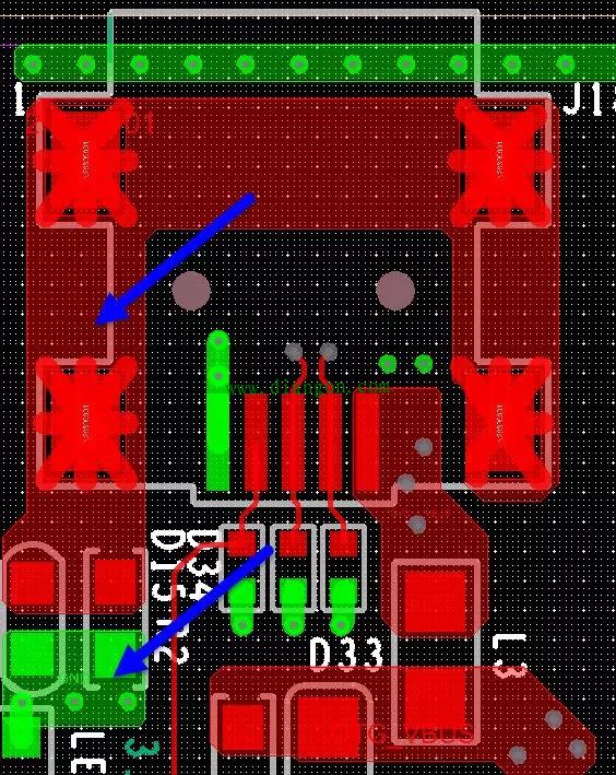 14.由于空间紧张,GND不能就近通过过孔进入内层地,这时可通过局部覆铜,再通过过孔和内层地连接。