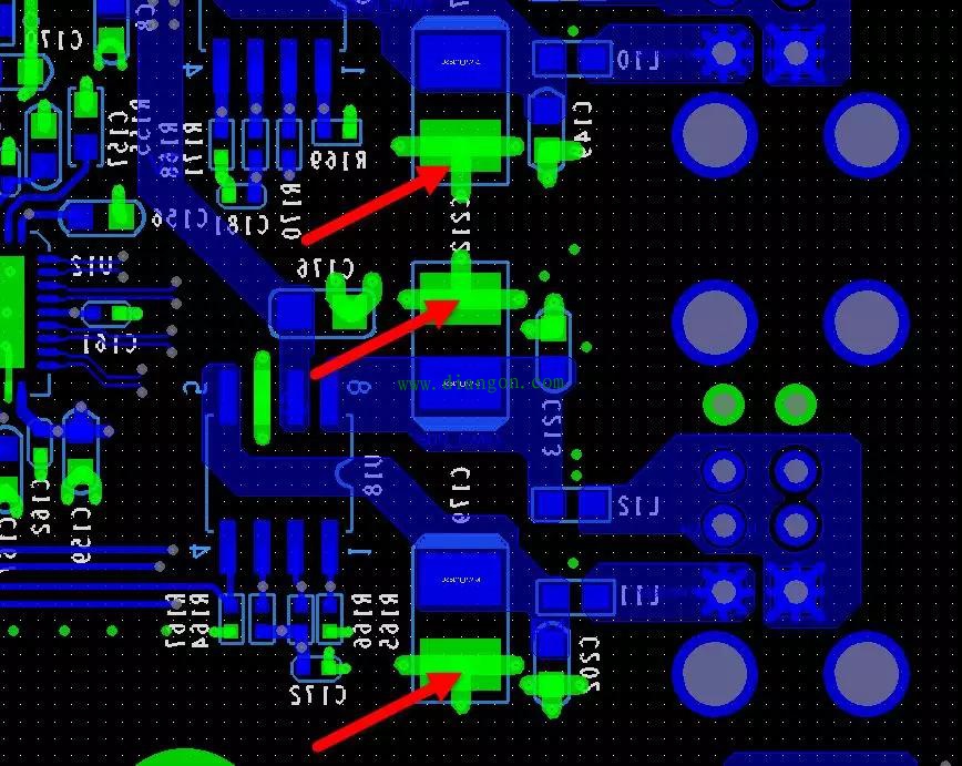 11.电容的GND端最好直接通过过孔进入内层地,不要通过铜皮连接,后者不利于焊接,且小区域的铜皮没有意义