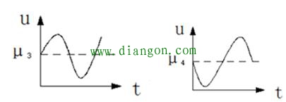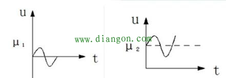 设输入为一正弦交流小信号u1(注意是小信号,也即在±0.7v内,如果超过了这个范围会出现饱和失真、截止失真问题),其大小和方向均做周期性变化,平均值为零;经过电容C1的耦合后其与原直流偏置电压Ube叠加后变成了脉动直流信号u2,也即u2的波形和u1一样,但u2均为正值即u2>0,u2的平均电压不在为零,这样做的目的是因为发射结导通有一个死区电压,必须抬升电压后才能保证完整的信号输入,否则信号会被削去大部分,造成了严重的失真。见下图输入电压u1、u2波形图。