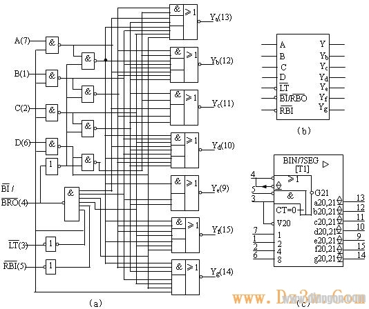 图2 7段显示译码器7448(a)逻辑图(b)方框图(c)符号图