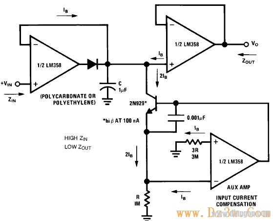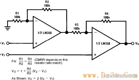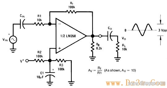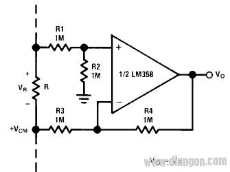 图4 LM358组成的直流耦合低通RC有源滤波器