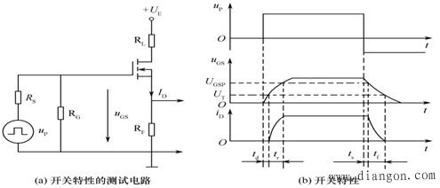 随着UGS增加,iD上升,从有iD到iD达到稳态值所用时间称为上升时间tr。开通时间ton可表示为