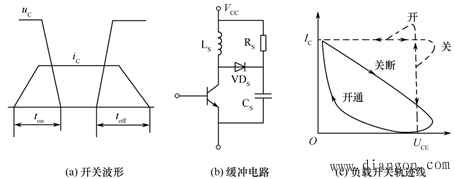 采用开通和关断缓冲电路,其负载线轨迹如图 (c)的实线所示。
