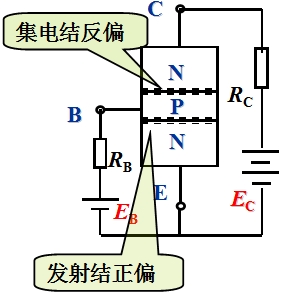 三极管放大的外部条件:发射结正偏、集电结反偏
