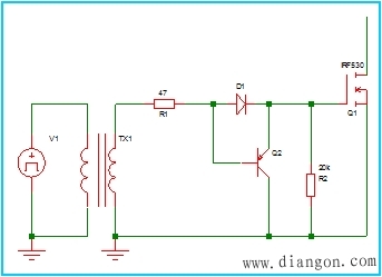 当驱动信号和功率MOS管不共地或者MOS管的源极浮地的时候,比如Buck变换器或者双管正激变换器中的MOS管,利用变压器进行耦合驱动如右图: