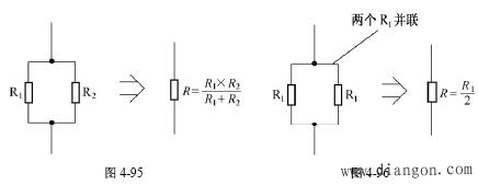 ,如图4-95所示。当两个相同阻值的电阻R1相并联时,其等效电阻的总阻值