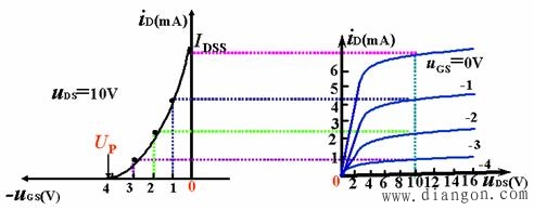 改变uGS的大小,就可以改变沟道宽窄,即改变沟道的电阻,从而控制iD的大小。这与绝缘栅场效应管是一样的。