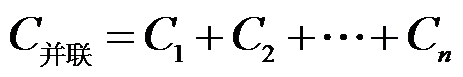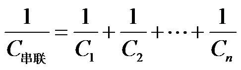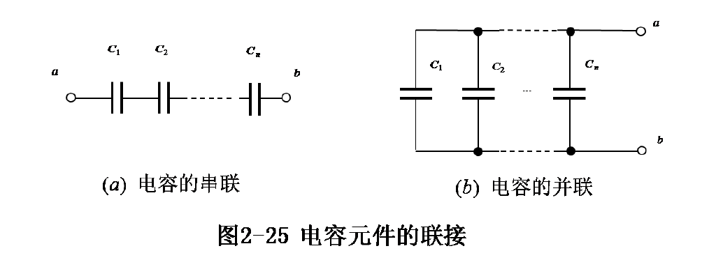 图2-25 所示是多个电容的串联和并联。经理论推导,其端口的等效电容量是: