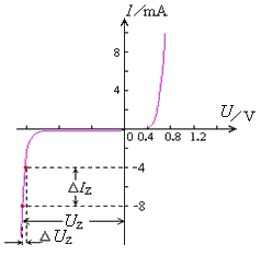 1、电路符号 2、伏安特性 伏安特性同普通二极管类似,不同之处是: (1) 反向击穿曲线陡直 (2)工作于反向击穿区 (3) △UZ小,△IZ大,rZ=△Uz/△Iz 常用稳压二极管的稳压值: 稳压值 3.3V, 3.6V ,3.9V ,4.7V ,5.1V ,5.6V, 6.2V, 15V, 27V, 30V, 75V。 3、稳压管的主要参数 (1)稳定电压UZ 稳定电压就是稳压二极管在正常工作时,管子两端的电压值。这个数值随工作电流和温度的不同略有改变,同一型号的稳压二极管,稳定电压值也有一定的分散性,例如2CW14硅稳压二极管的稳定电压为6~7.5V。 (2)稳定电流IZ 稳定电流:稳压二极管工作于稳定电压时所需的最小反向电流。 最大稳定电流:稳压二极管允许通过的最大反向电流。 (3)动态电阻rZ 在稳定电压范围内,管子两端电压的变化量与工作电流的变化量之比。 即 rZ =△ UZ /△ IZ (4)最大耗散功率PZM 反向电流通过稳压二极管的PN结时,要产生一定的功率损耗,PN结的温度也将升高。根据允许的PN结工作温度决定出管子的耗散功率。通常小功率管约为几百毫瓦至几瓦。 4、典型稳压电路