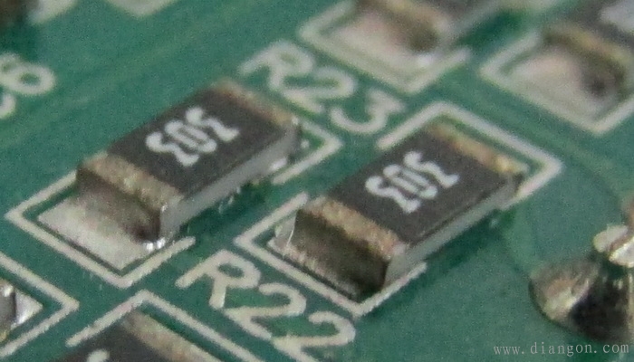 下图是两颗电极氧化了的贴片电阻(电极表面有点黑),别看它们现在好好的,一旦电路进入了恶劣的工作状态(高温高湿),电阻就会因为虚焊而使电路工作在不可预测的状态,继而损坏。