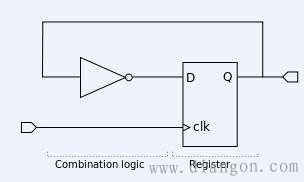 图中的三角形加一个圆圈是一个非门,旁边的器件是一个寄存器,D是输入,Q是输出,clk端输入时钟信号。