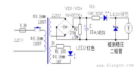 上述测量方法的原理是,万用表R×10k档的表内电池电压比R×1k档高得多,若稳压二极管的稳压值低于该电池电压,则用R×10k档测量时稳压二极管的PN结就会齐纳击穿,表现为阻值读数下降许多。而普通二极管的反向耐压均较高,R×10k档的表内电池电压不足以使其反向击穿。当然,如果稳压二极管的稳压值高于表内电池电压,表针也不会偏转,用上述方法也就不能区分被测二极管的类型了。