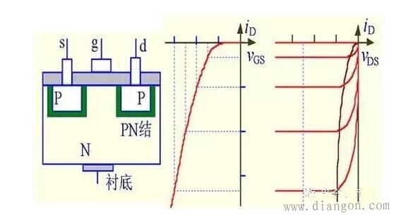 (1) VGS=0时,不管VDS极性如何,其中总有一个PN结反偏,所以不存在导电沟道。