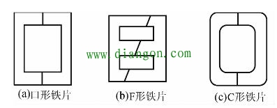 电源变压器铁芯并不是整块铁,而是由许多贴片铁成的。硅钢片外表覆盖着一层薄绝缘漆。每层由一个I形部分和一个E形部分拼合而成。