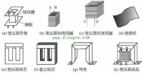由于初级线圈AB加入的220V电压较高,次级CD送出的12V电压较低。为了保证初级和次级绝缘可靠,常在绕完变压器初级线圈之后,在其外表包一层绝缘纸,再在绝缘纸上绕次级线圈。绝缘纸一般为牛皮纸,青壳纸及白玻璃纸等。