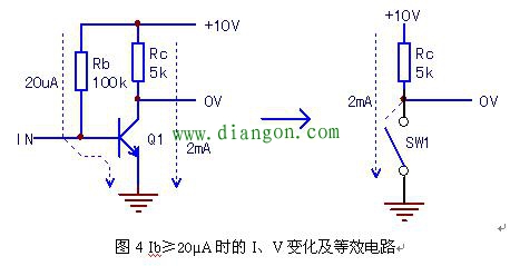若使三极管出离受控区或线性放大区,进入至开关区后,有以下两种情况。